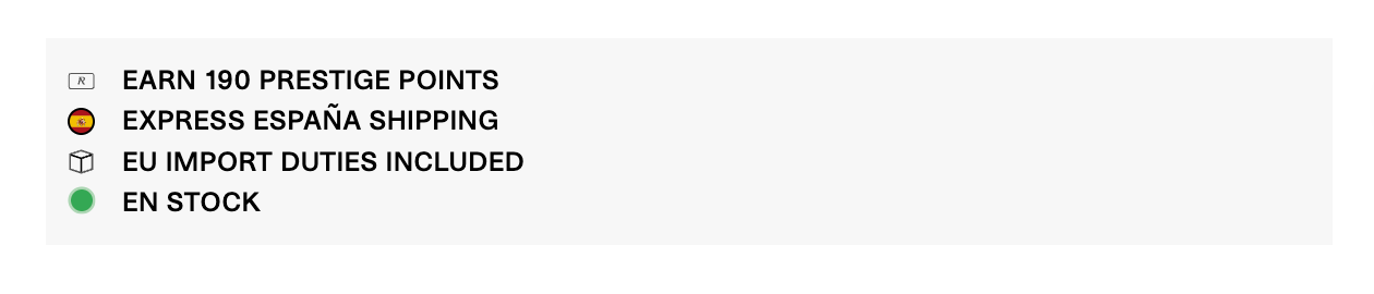 EU import duties included (una de las principales objeciones cuando la gente compra a una marca que no está en su país es si el producto vendrá con recargo por parte de las aduanas, en este caso te lo especifican para que puedas quedarte tranquilo)