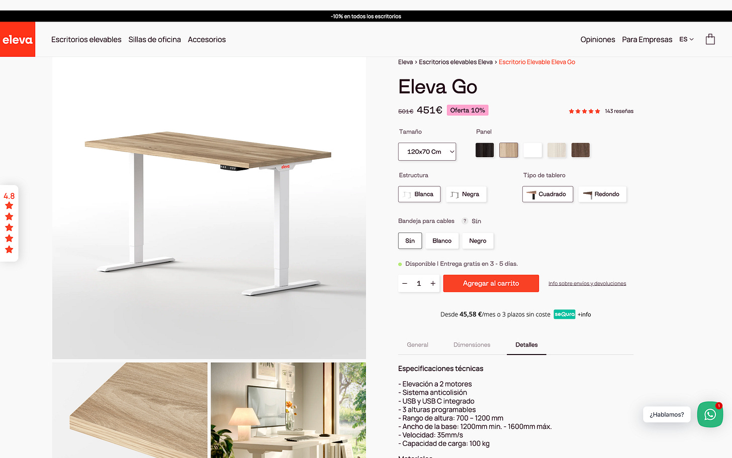 Elevadesk es de las pocas marcas que el canal online lo gestiona la misma empresa que fabrica el producto.