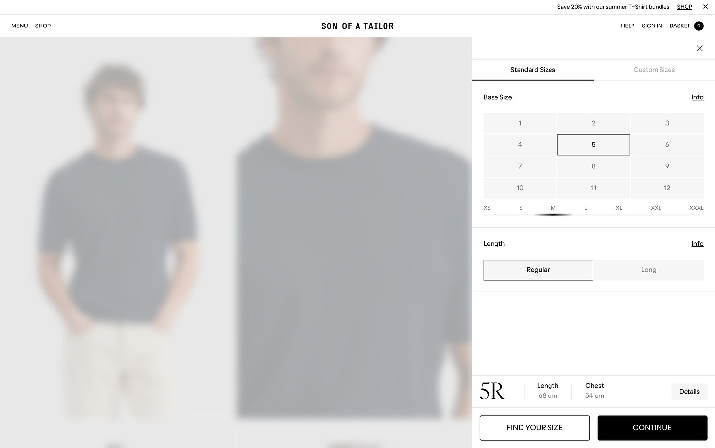 Con su algoritmo de tallaje a través de una serie de preguntas (edad, altura, peso, talla de calzado…) crean la talla perfecta para ti.