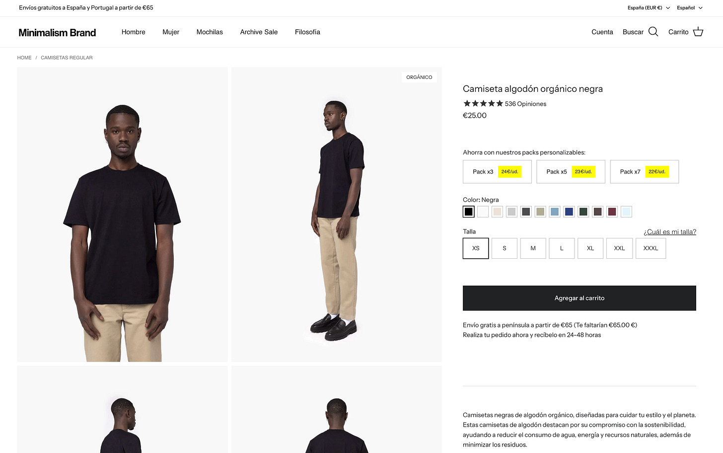 Y desde las páginas de producto único cuando tienen la opción de poder comprar en pack, haciendo tangible el ahorro que supone: