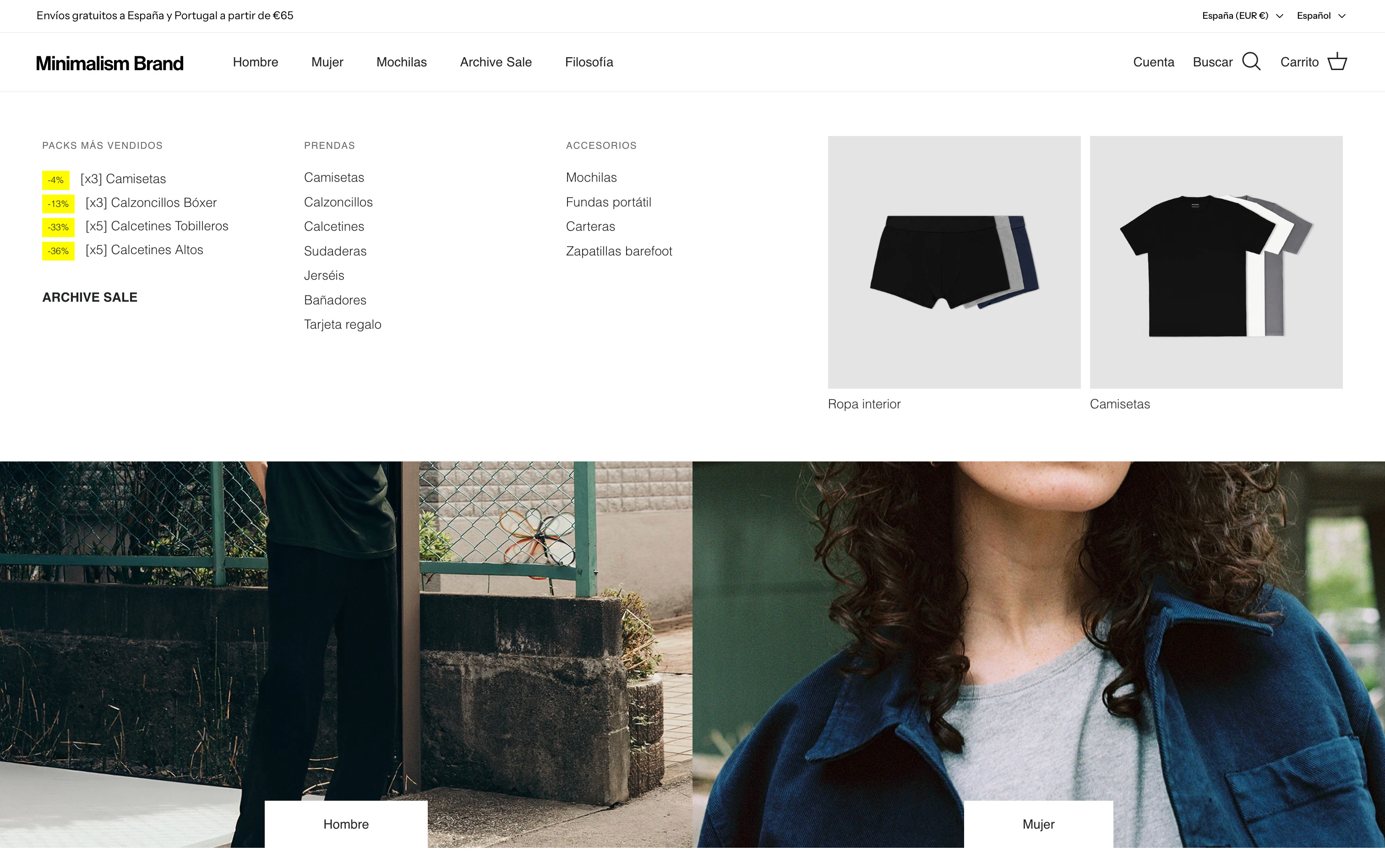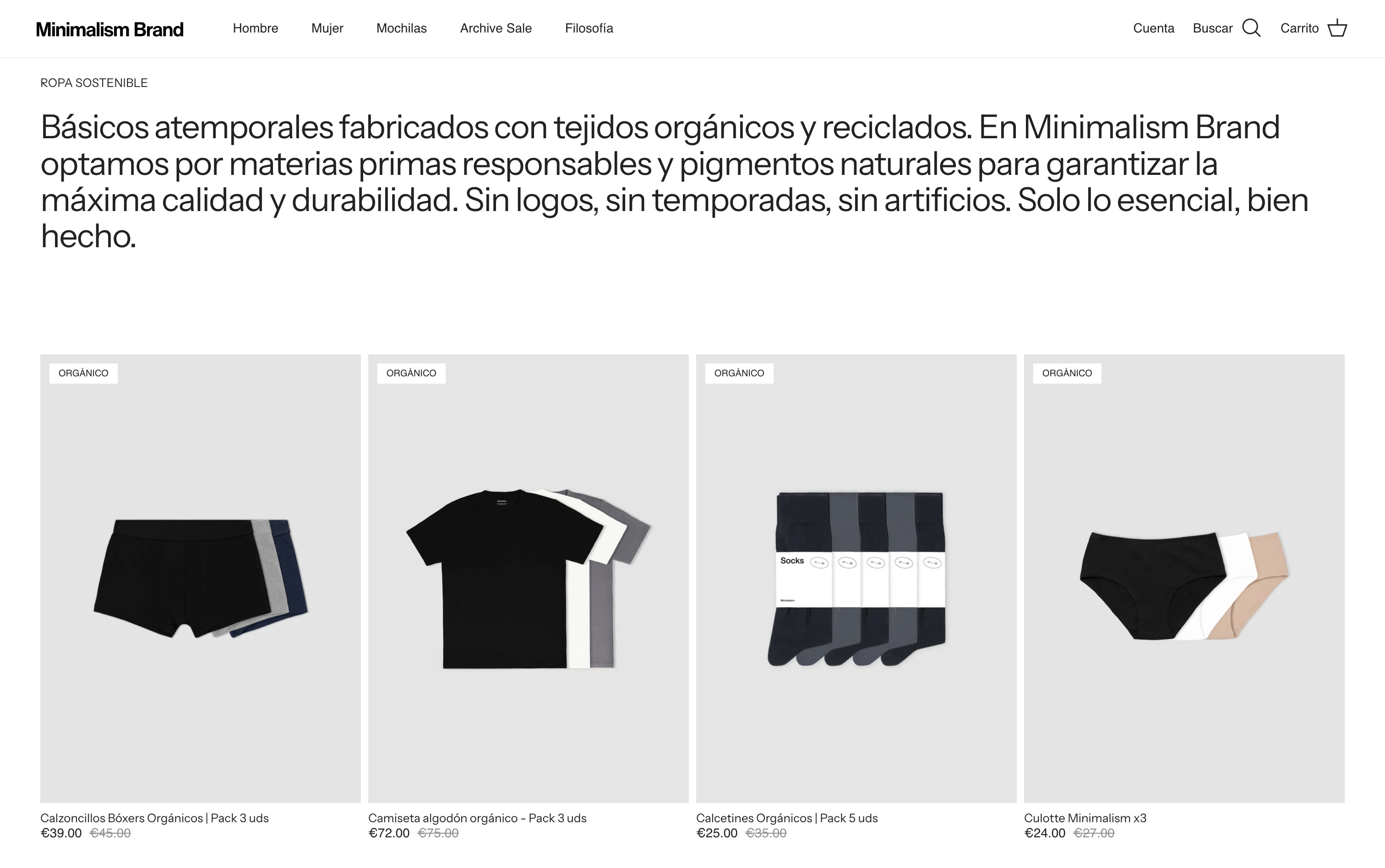 Minimalism lo hace muy tangible a lo largo de su web desde el propio menú: